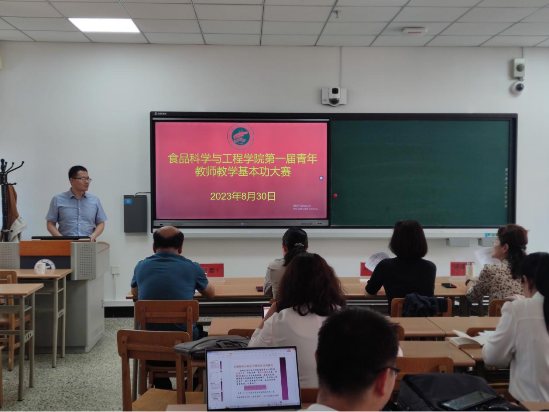 为进一步提升青年教师的教学技能和业务水平,搭建青年教师相互交流和共同成长的平台,开拓教学育人的新理念,食品科学与工程学院于8月30日下午在贺兰山校区兰山一教C504举办了第一届青年教师教学基本功大赛。比赛由学院副书记、副院长王松磊主持。