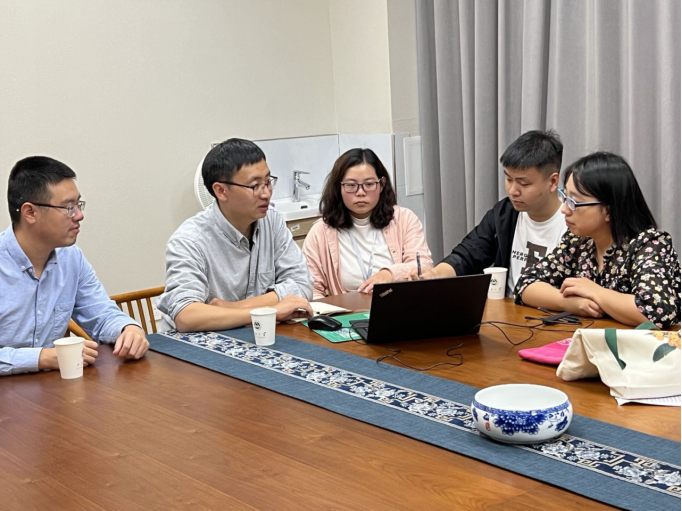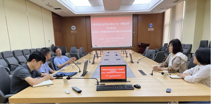 团队参观未来食品科学中心后,在生物工程学院会议室,就宁夏回族自治区“揭榜挂帅”项目“葡萄酒陈酿期间橡木桶替代材料装备研制”进行了项目推进与问题研讨。双方团队人员分别介绍了目前研究内容与研究成果,对项目进行了强有力的推进、分析。