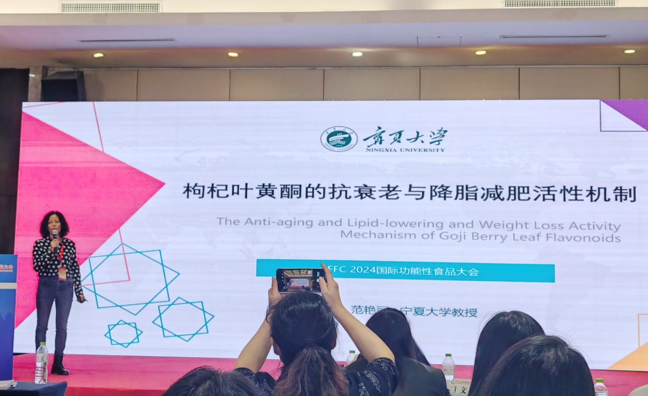 食品营养与健康创新团队范艳丽教授在此次会议上作了题为“枸杞叶黄酮的抗衰老与降脂减肥活性机制”的学术报告。