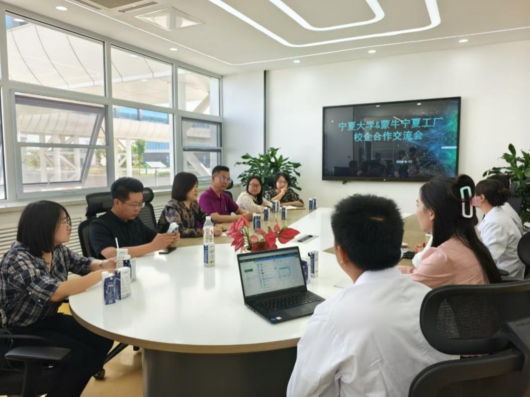 传统发酵食品先进制造团队,在负责人张惠玲教授的带领下深入灵武市蒙牛乳业(宁夏)有限公司、宁夏华信达生物科技有限公司、宁夏亿美生物科技有限公司、宁夏金双禾粮油有限公司、宁夏阿萨粮油食品有限公司、宁夏富杨食品有限公司等食品企业开展调研活动。学院党总支副书记李文华,宁夏食品工业协会秘书长徐宏杰,团队成员田晓菊、潘琳及学院教师魏晓博、雒雪丽一同参加调研。