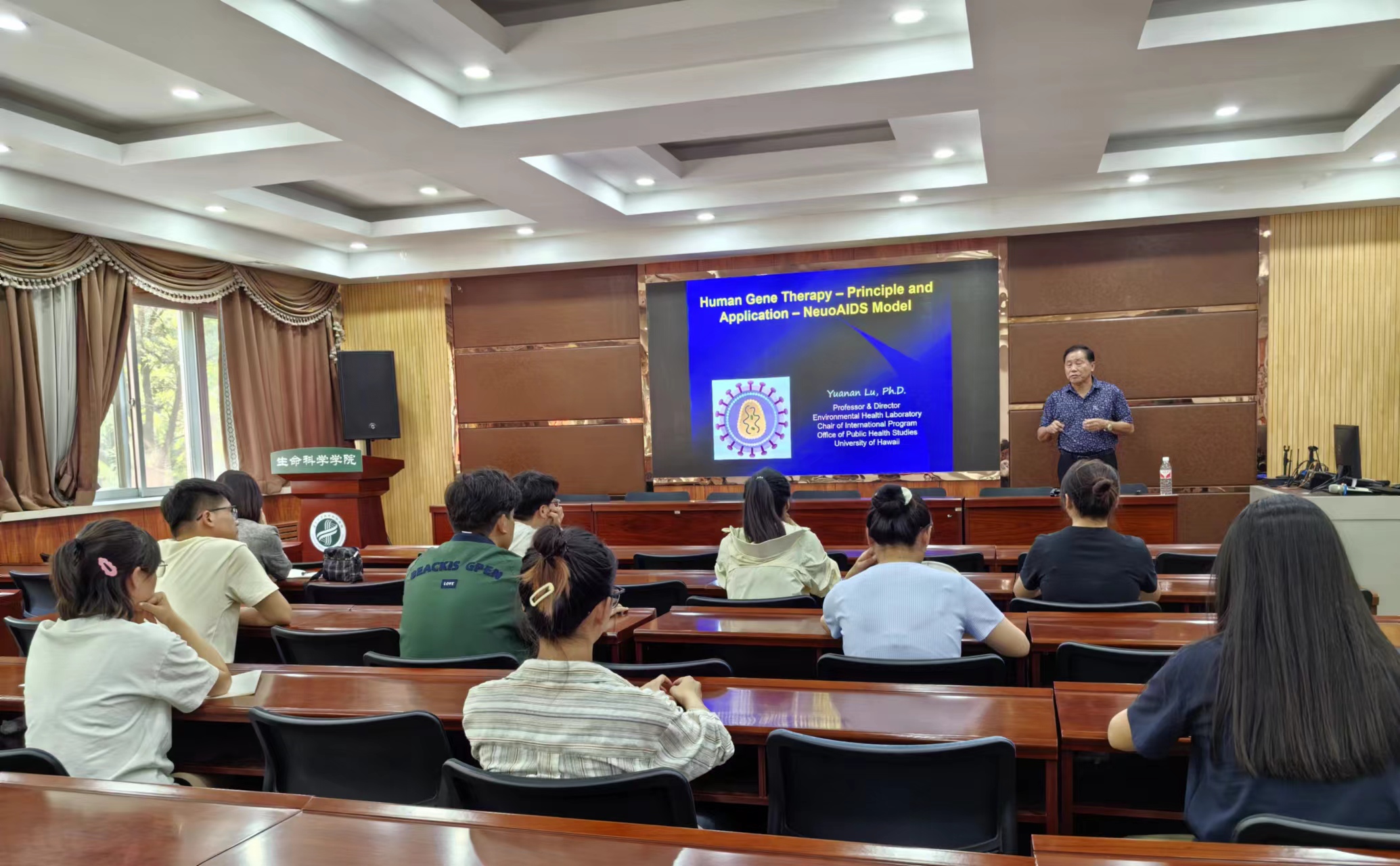 副院长方海田教授主持。本次报告的题目是“Human Gene Therapy–Principle and Application–NeuroAIDS Model”,着重介绍了基因治疗的基本理论和应用前景。基因治疗是防控传染性疾病、癌症和遗传疾病的重要措施之一,鲁教授以NeuroAIDS为例,阐述如何利用生物工程技术将单核巨噬细胞打造成一种基因载体,将抗HIV的药物安全准确投送到大脑系统,以便有效控制病毒在大脑中复制,避免大脑损伤和因病毒感染而引起的大脑痴呆。