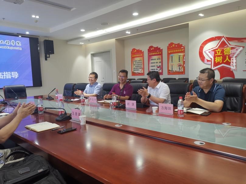 ,就党建引领发展、学科专业建设、科技成果转化、国际合作交流与社会服务等相关工作进行调研交流。学院院长刘源主持会议,副书记李文华,副院长王松磊、方海田参加了会议。