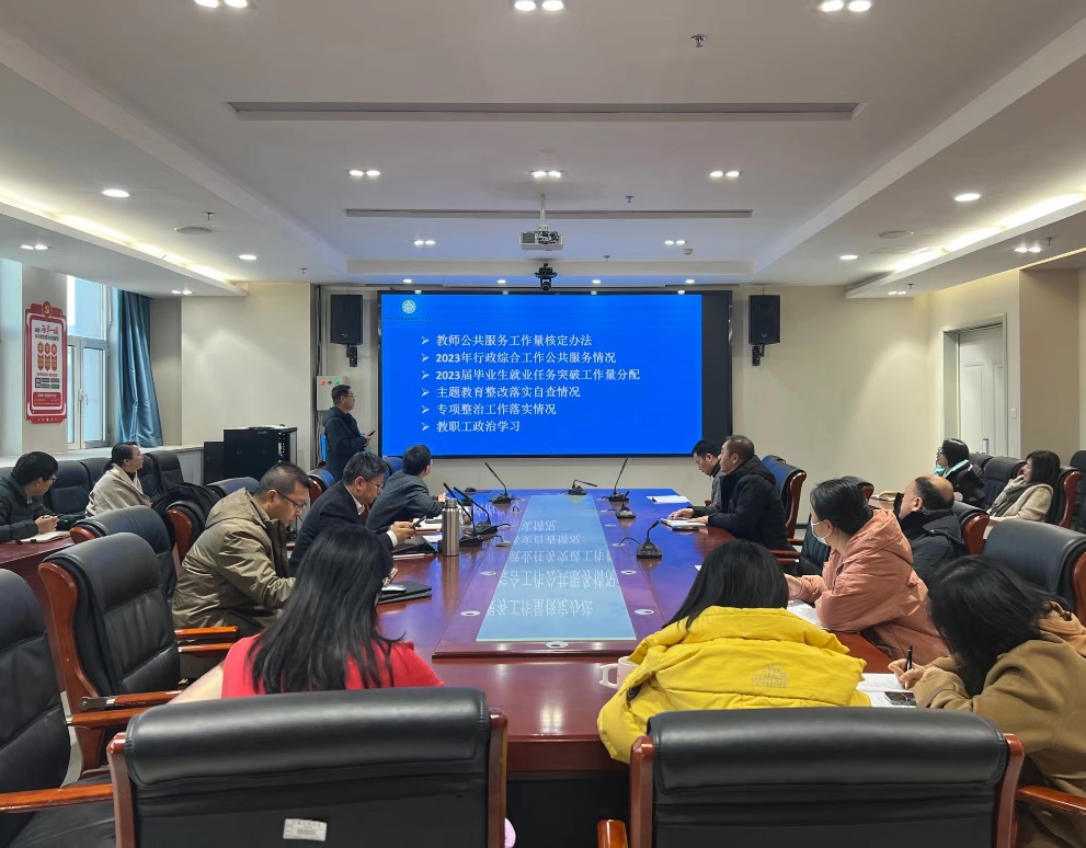 李文华副书记向大家介绍了学院教师公共服务工作量核定办法,通报了2023年学院行政综合公共服务工作量统计结果、2023届毕业生就业学院任务突破工作量分配情况、学院主题教育和专项整治问题整改落实情况,并带领大家一起学习了习近平总书记重要文章《开辟马克思主义中国化时代化新境界》。