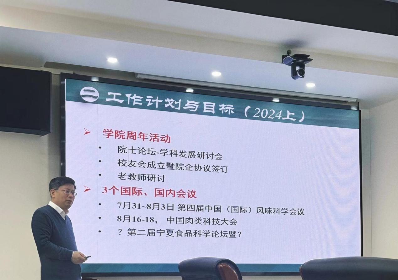 刘源就本学期学院行政工作、学科建设与科研重点任务作了安排部署,对学院制度建设、组织架构、治理体系、人才培养、整体搬迁与基础工作等方面的总体规划谈了工作思路,并表示要结合学院周年庆典活动的开展,举办宁夏食品学会年会、食品学科发展研讨会、西部地区食品学科青年学者论坛、第一届中国(国际)风味科学论坛等,成立uu娱乐