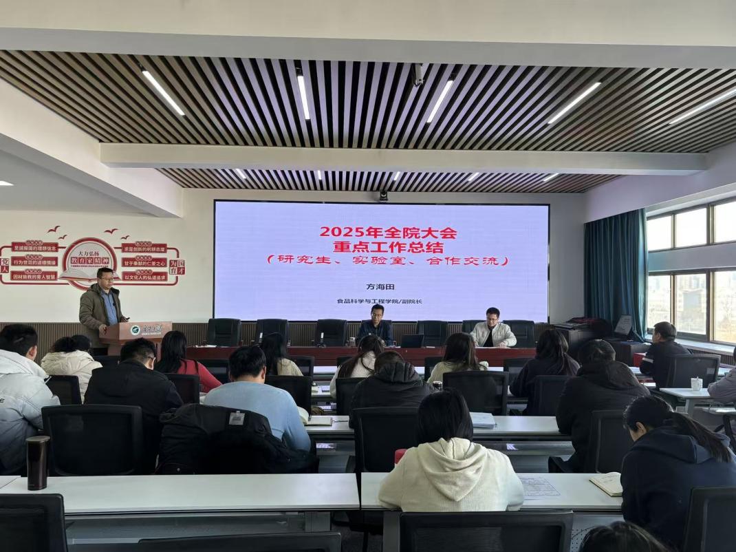 方海田副院长通报了学院2025年关键业绩指标完成情况,重点介绍了博士点申报材料系统整理、实验室整体搬迁与运行保障、实验室安全管理体系建设以及学位点建设和研究生培养等方面的工作进展,强调要持续提升科研平台运行效能和研究生培养质量。
