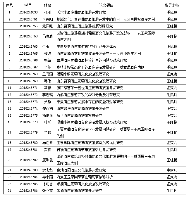 下一篇:2018级葡萄与葡萄酒工程专业(葡萄酒营销方向)本科毕业生开题答辩安排及分组情况